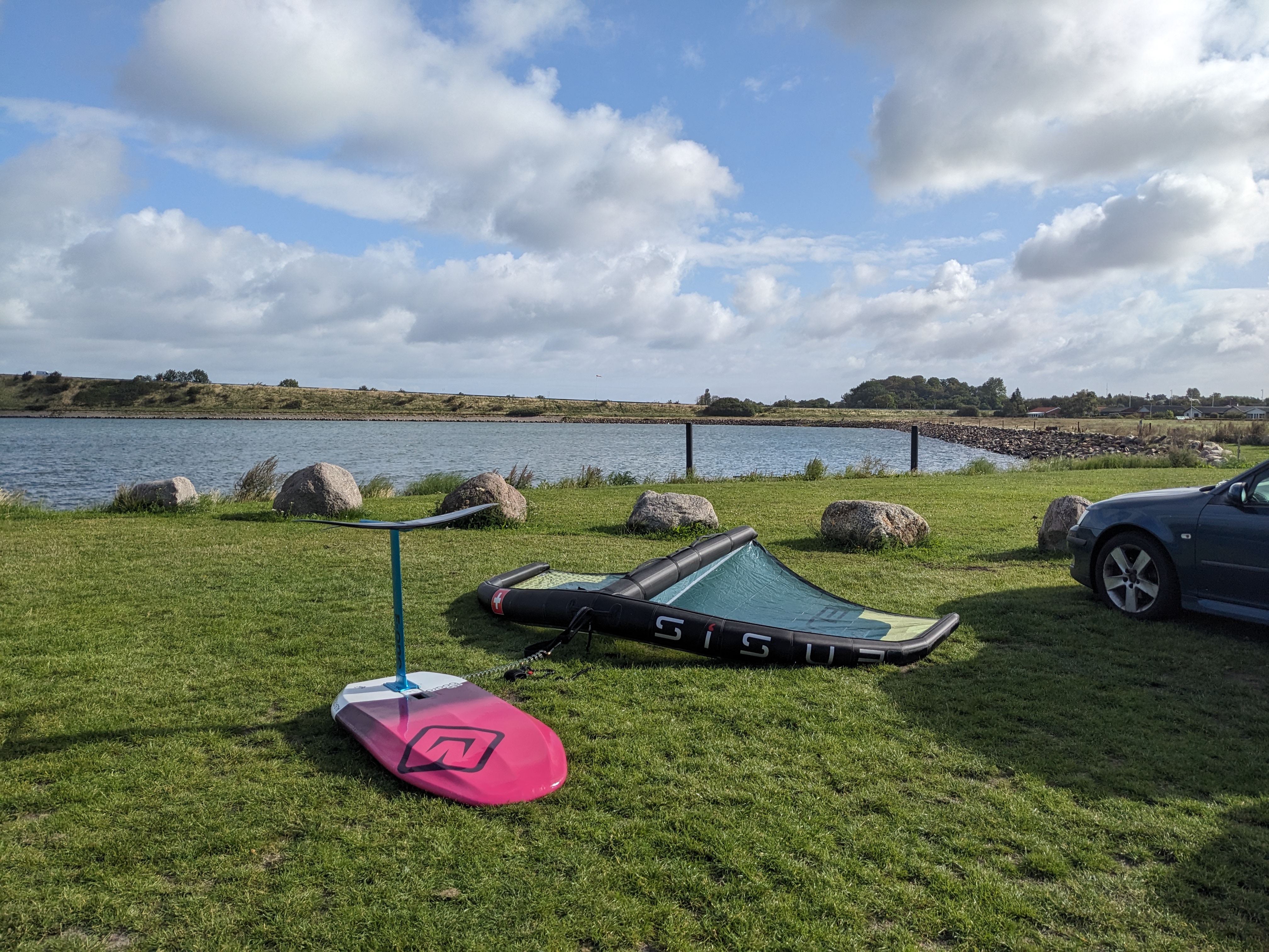 Between Rudkøbing harbour and the bridge, this sheltered water is idea for learning. You can rig up in the grass area and launch from the Row club bridge.